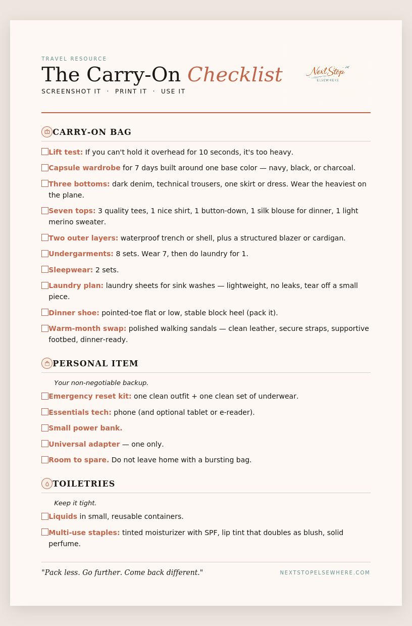 ⬅️The Carry-On Checklist